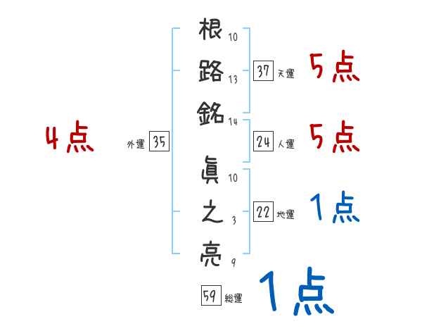 根路銘眞之亮さんの画数の鑑定結果