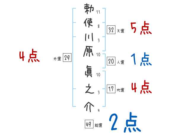 天運![]() | 勅使川原眞之介さんの天運は32画の5つ星!柔軟性があり成功する。チャンスが多く金運が良い。 家系が持つ宿命的な運勢を表します。祖先から受け継いだ苗字ですので自分の力が及びません。家柄を象徴します。 |