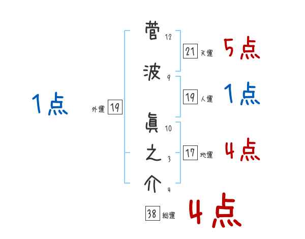 外運![]() | 菅波眞之介さんの外運は19画の1つ星!優れた才能を持ちますが、協調性が足りないことも。周りの人と協力する事を意識しましょう。 生活面を象徴する運勢です。外部から受ける影響力を表し、結婚運、家庭運や職場、環境への順応性を表します。 |