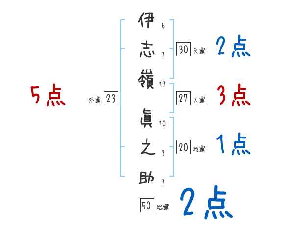 伊志嶺眞之助さんの画数の鑑定結果