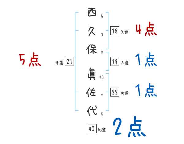 西久保眞佐代さんの画数の鑑定結果