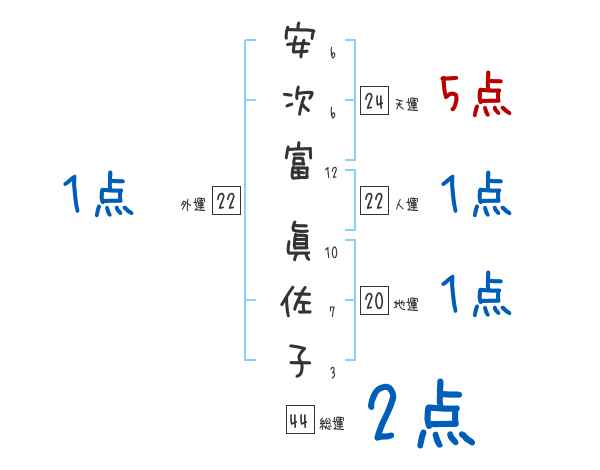 安次富眞佐子さんの画数の鑑定結果