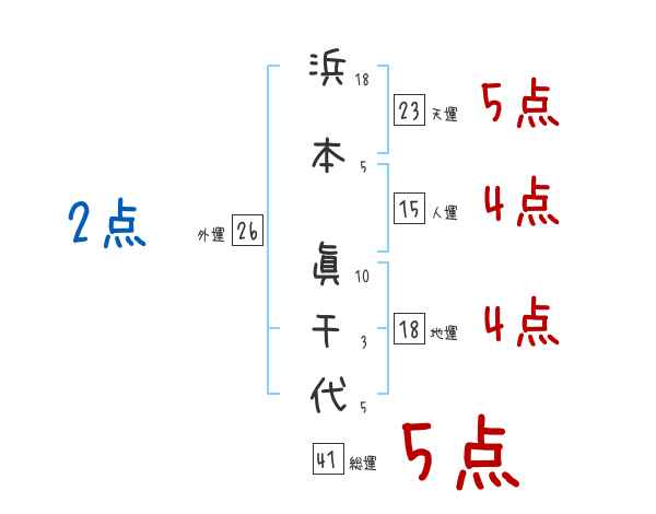 浜本眞千代さんの画数の鑑定結果