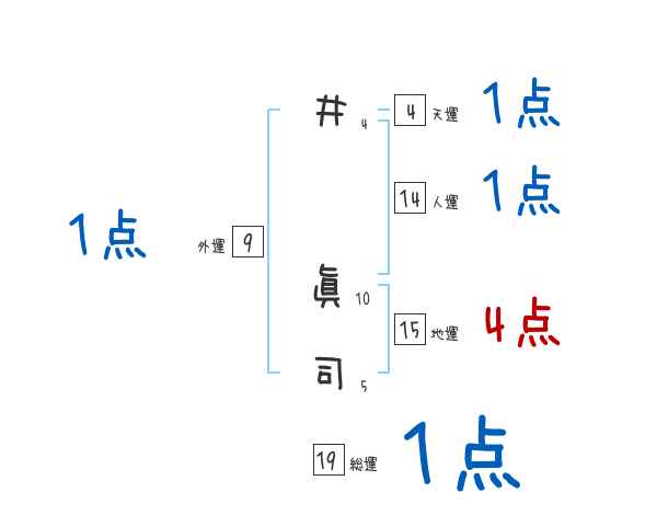 天運![]() | 井眞司さんの天運は4画の1つ星!感情が不安定で苦労するかも。周囲との協調を心掛けましょう。 家系が持つ宿命的な運勢を表します。祖先から受け継いだ苗字ですので自分の力が及びません。家柄を象徴します。 |