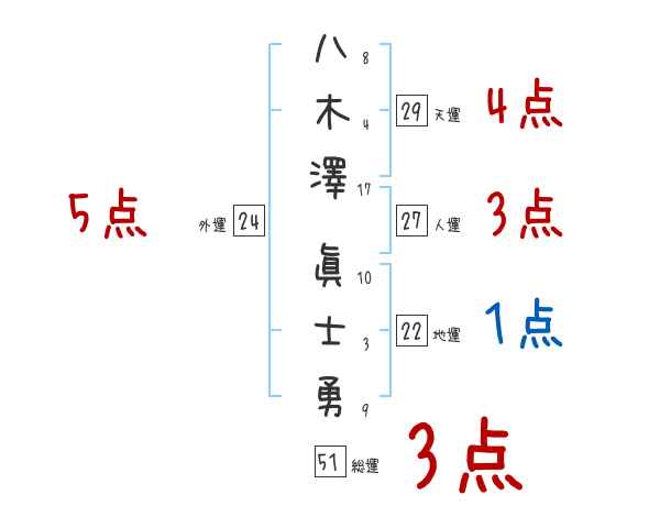 八木澤眞士勇さんの画数の鑑定結果