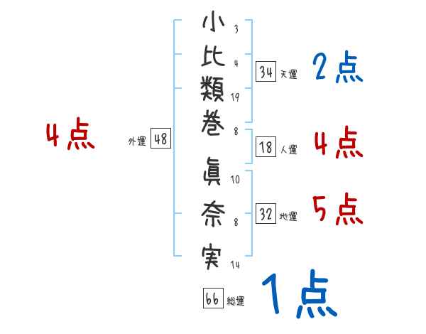 人運![]() | 小比類巻眞奈実さんの人運は18画の4つ星!情熱的で剛気。忍耐力があり信頼される。 性格や才能などを表す2番目に重要な運勢です。人間関係や協調性、社会的な成功に影響します。主に20歳から50歳ぐらいまでの中年期の運勢を表します。 |