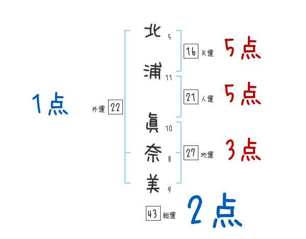 北浦眞奈美さんの画数の鑑定結果