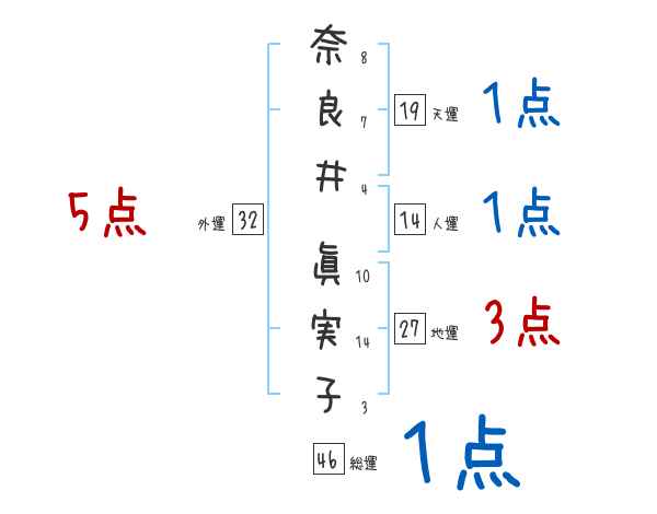 奈良井眞実子さんの画数の鑑定結果