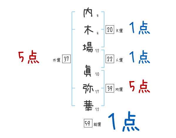 外運![]() | 内木場眞弥華さんの外運は37画の5つ星!努力家で順応性に優れる。現実的な考え方ができ忠実に物事をこなす。 生活面を象徴する運勢です。外部から受ける影響力を表し、結婚運、家庭運や職場、環境への順応性を表します。 |