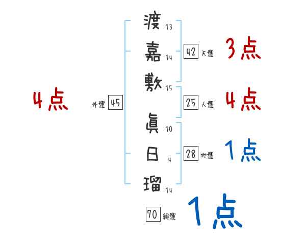 渡嘉敷眞日瑠さんの画数の鑑定結果