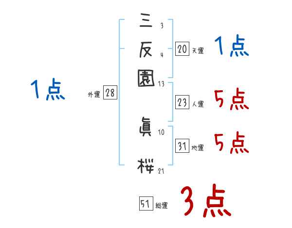 総運![]() | 三反園眞桜さんの総運は51画の3つ星!変化が激しく、危険に注意。堅実な性格。 あなたの人生を表す1番重要な運勢です。生涯を通じて影響する総合運となり、主に50歳以降の晩年期に影響を及ぼします。 |