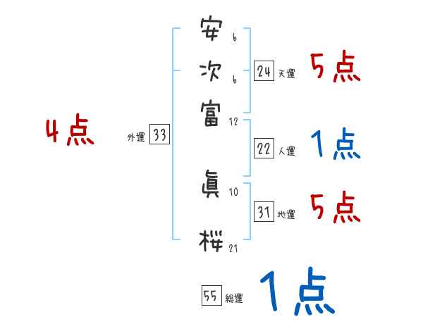 安次富眞桜さんの画数の鑑定結果