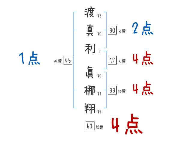 総運![]() | 渡真利眞梛翔さんの総運は63画の4つ星!家庭運がよく順調な生活。温和な性格。 あなたの人生を表す1番重要な運勢です。生涯を通じて影響する総合運となり、主に50歳以降の晩年期に影響を及ぼします。 |