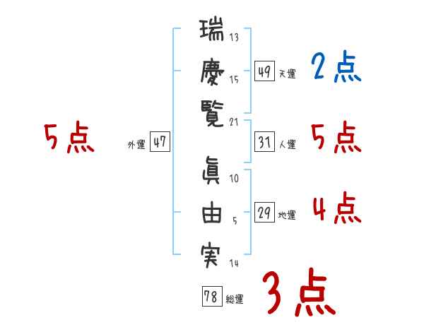瑞慶覧眞由実さんの画数の鑑定結果
