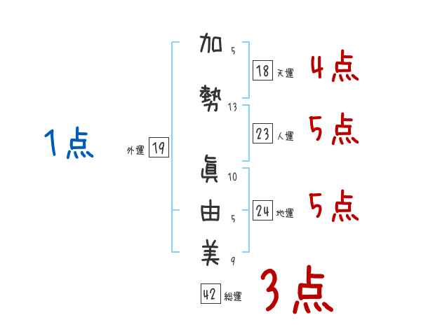 加勢眞由美さんの画数の鑑定結果