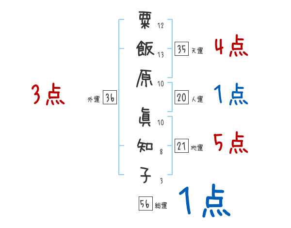 外運![]() | 粟飯原眞知子さんの外運は36画の3つ星!先見性が豊かです。多少神経質で苦労することも。 生活面を象徴する運勢です。外部から受ける影響力を表し、結婚運、家庭運や職場、環境への順応性を表します。 |