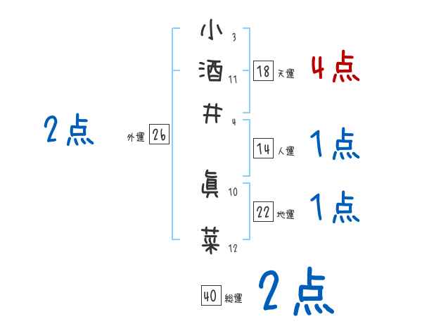 小酒井眞菜さんの画数の鑑定結果
