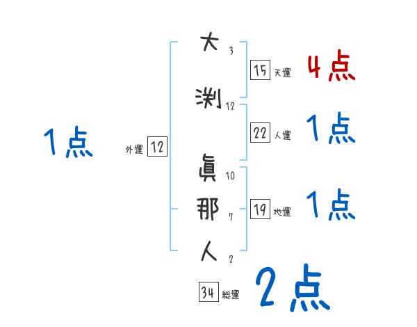 大渕眞那人さんの画数の鑑定結果