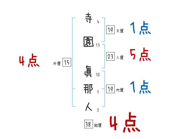 寺園眞那人さんの画数の鑑定結果