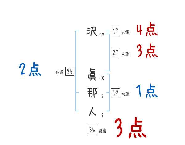 沢眞那人さんの画数の鑑定結果