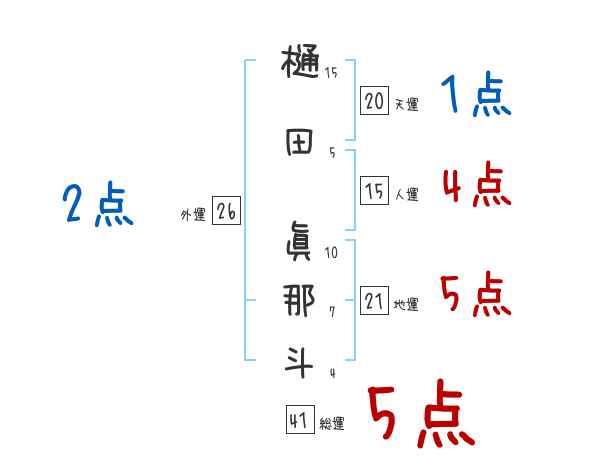 外運![]() | 樋田眞那斗さんの外運は26画の2つ星!波瀾万丈かも。信頼できる人を大事にしましょう。 生活面を象徴する運勢です。外部から受ける影響力を表し、結婚運、家庭運や職場、環境への順応性を表します。 |