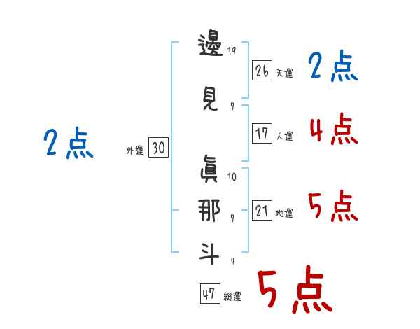 天運![]() | 邊見眞那斗さんの天運は26画の2つ星!波瀾万丈かも。信頼できる人を大事にしましょう。 家系が持つ宿命的な運勢を表します。祖先から受け継いだ苗字ですので自分の力が及びません。家柄を象徴します。 |