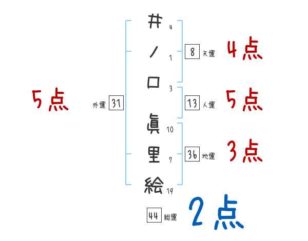 外運![]() | 井ノ口眞里絵さんの外運は31画の5つ星!社交性があり判断力に優れる。順風満帆な人生で円満な生活。 生活面を象徴する運勢です。外部から受ける影響力を表し、結婚運、家庭運や職場、環境への順応性を表します。 |