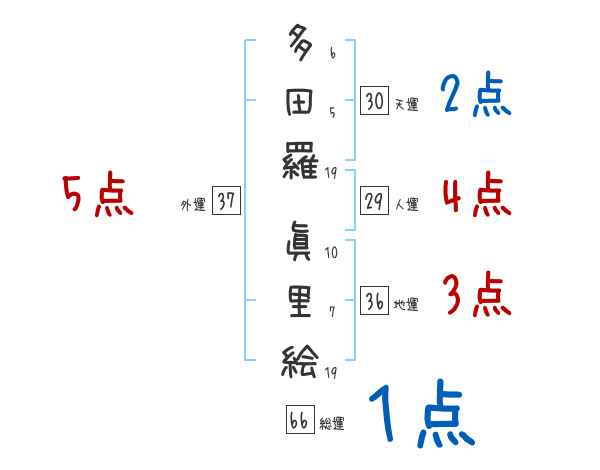 多田羅眞里絵さんの画数の鑑定結果
