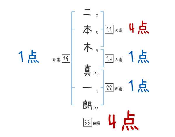 二本木真一朗さんの画数の鑑定結果