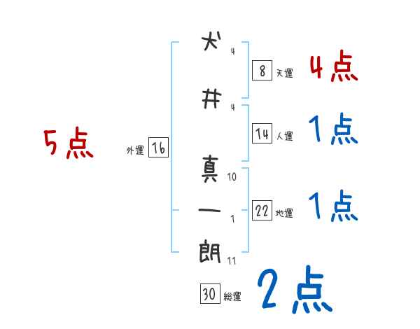 犬井真一朗さんの画数の鑑定結果