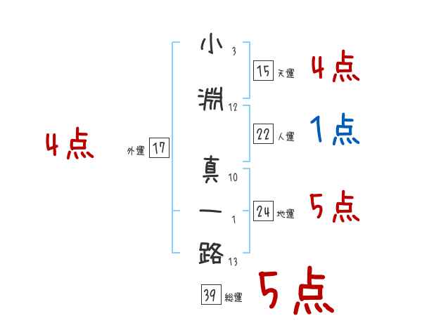 小淵真一路さんの画数の鑑定結果