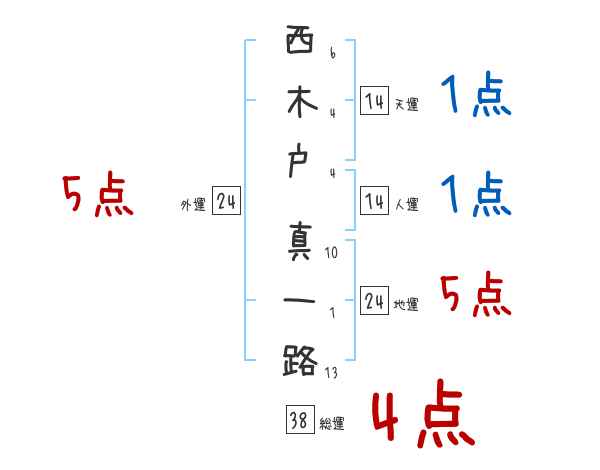 西木戸真一路さんの画数の鑑定結果