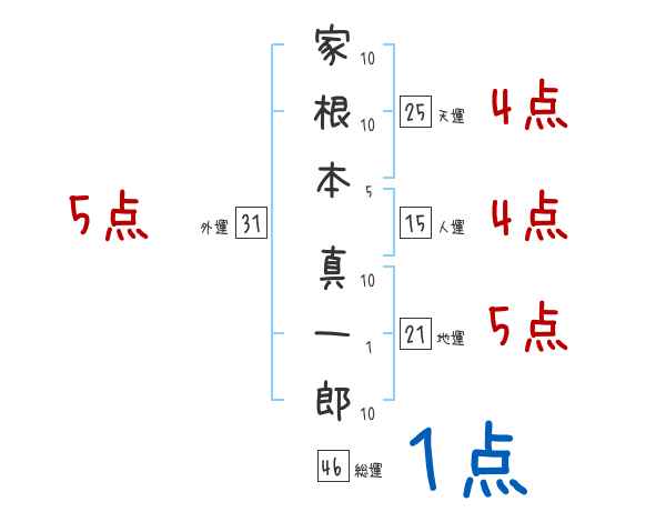 地運![]() | 家根本真一郎さんの地運は21画の5つ星!統率力がある。独立し成功する。名誉を手に入れる。 個性を表す基礎的な運勢です。性格形成や対人関係、行動力など家庭環境に影響されます。主に誕生してから20歳くらいまでの若年期の運勢を表します。 |
