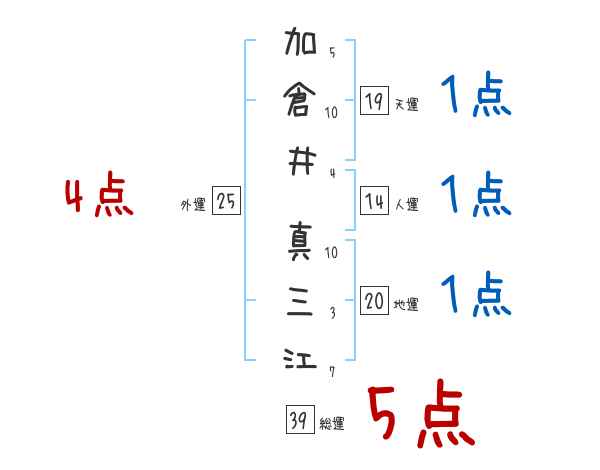 総運![]() | 加倉井真三江さんの総運は39画の5つ星!社交性に優れ人望が厚い。人の上に立ち成功する。 あなたの人生を表す1番重要な運勢です。生涯を通じて影響する総合運となり、主に50歳以降の晩年期に影響を及ぼします。 |