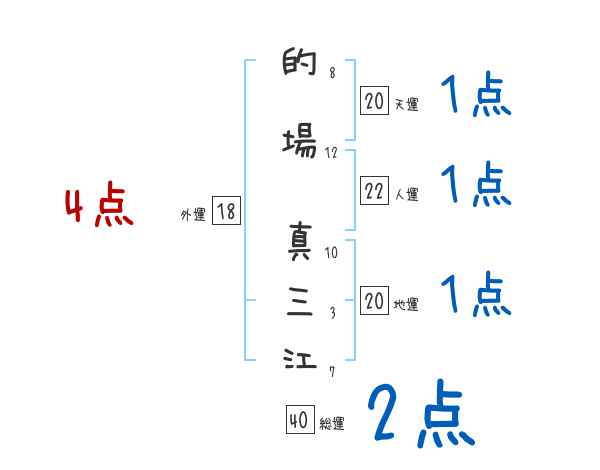 外運![]() | 的場真三江さんの外運は18画の4つ星!情熱的で剛気。忍耐力があり信頼される。 生活面を象徴する運勢です。外部から受ける影響力を表し、結婚運、家庭運や職場、環境への順応性を表します。 |