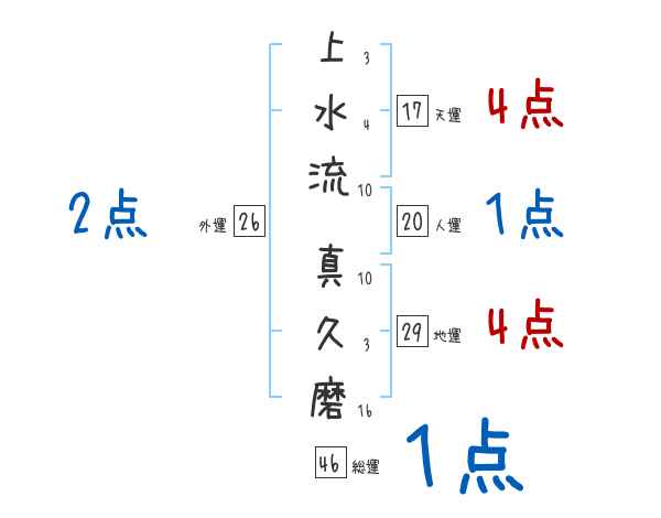 上水流真久磨さんの画数の鑑定結果