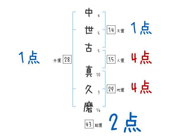 中世古真久磨さんの画数の鑑定結果