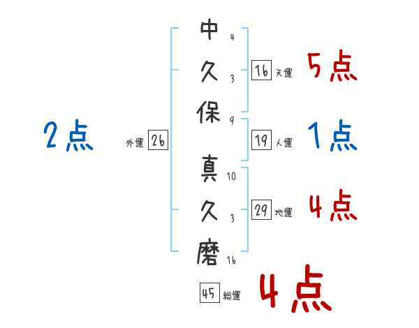 中久保真久磨さんの画数の鑑定結果