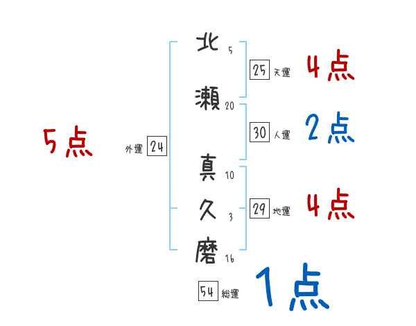 北瀬真久磨さんの画数の鑑定結果