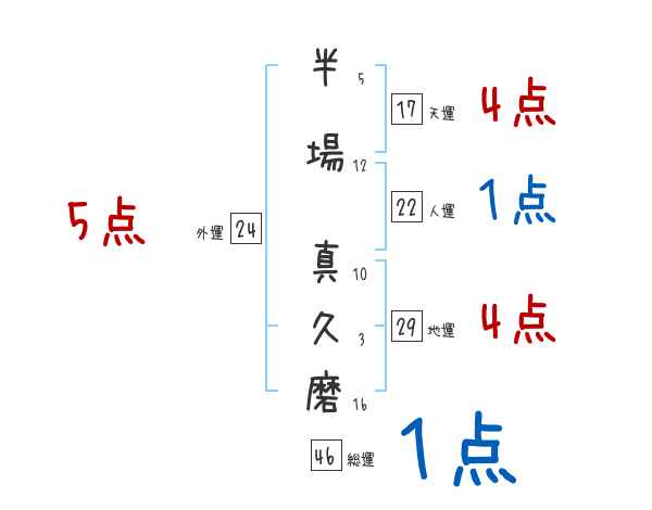 半場真久磨さんの画数の鑑定結果
