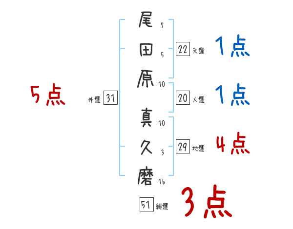 尾田原真久磨さんの画数の鑑定結果