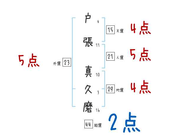 天運![]() | 戸張真久磨さんの天運は15画の4つ星!人徳があり出世する。順調に物事を進め円満な人生。 家系が持つ宿命的な運勢を表します。祖先から受け継いだ苗字ですので自分の力が及びません。家柄を象徴します。 |