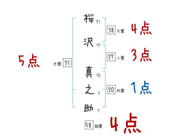桜沢真之助さんの画数の鑑定結果