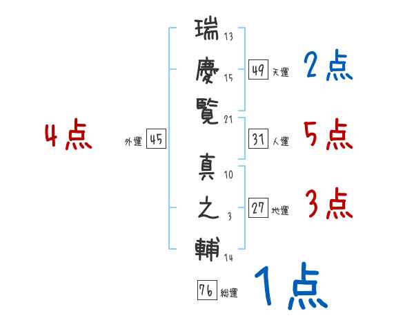 瑞慶覧真之輔さんの画数の鑑定結果