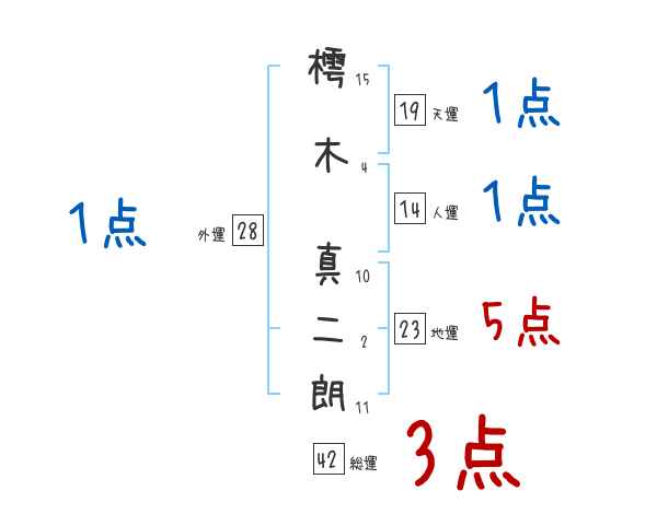 外運![]() | 樗木真二朗さんの外運は28画の1つ星!家庭環境に注意。スポーツで活躍できる能力があるかも。 生活面を象徴する運勢です。外部から受ける影響力を表し、結婚運、家庭運や職場、環境への順応性を表します。 |