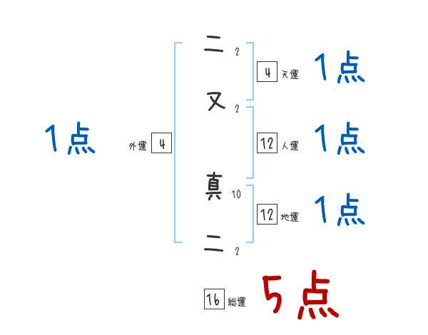 二又真二さんの画数の鑑定結果
