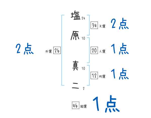 塩原真二さんの画数の鑑定結果