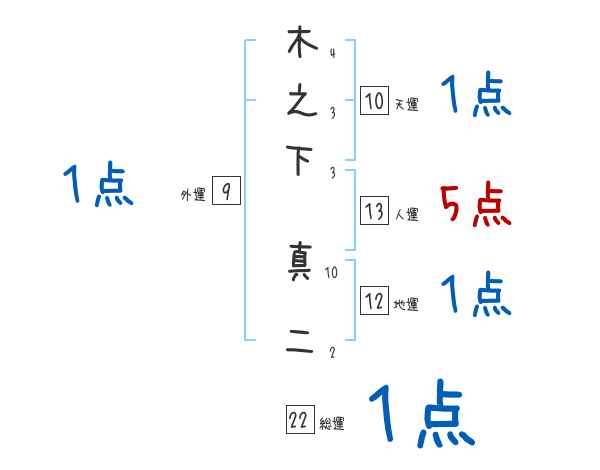 天運![]() | 木之下真二さんの天運は10画の1つ星!不安を感じやすい傾向。ストレスを抱えないように注意しましょう。 家系が持つ宿命的な運勢を表します。祖先から受け継いだ苗字ですので自分の力が及びません。家柄を象徴します。 |