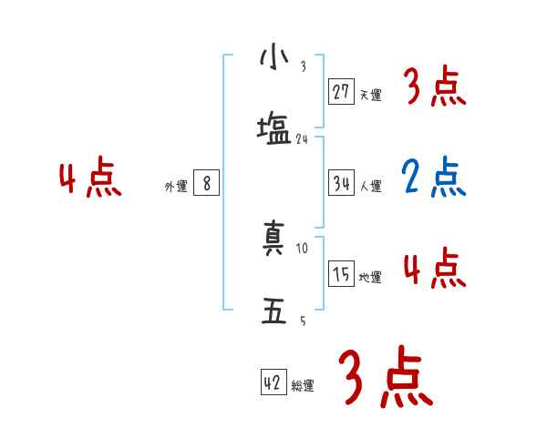 小塩真五さんの画数の鑑定結果