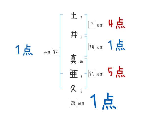 土井真亜久さんの画数の鑑定結果